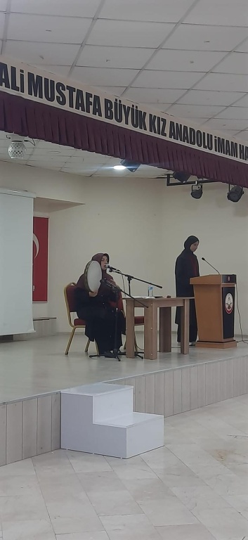 Enstrüman eşliğinde İlahi ve ezgiler gibi çeşitli etkinliklere yer verildi. Öğrencilerin ilahilere katılması salonda duygu dolu anları yaşattı. Program, yapılan dua ile sona erdi.